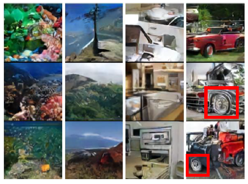 새로운 이미지의 생성에 있어서도 빨간 네모처럼 부자연스러운 모습도 존재한다.