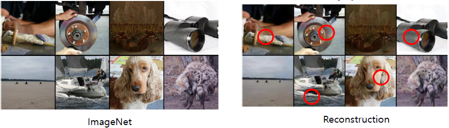 VQ-VAE는 low-dimensionality를 이용하였기에 빨간색 동그라미처럼 조금 흐린 부분이 존재한다.