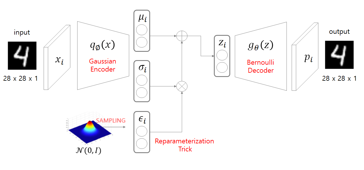VAE의 전체적인 흐름을 보면 다음과 같다.