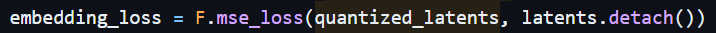 앞선 embedding loss와 달리 코드북에 detach를 적용한 모습을 확인할 수 있다.