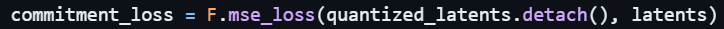 앞서 말한 것처럼, 해당 loss는 코드북을 학습시키는 과정이다. 인코더의 아웃풋과 코드북의 값을 유사하게 만드는 과정이다. 코드북만 학습시키기 위해 인코더의 아웃풋에는 sg (stop gradient)를 이용하여 업데이트를 막았다.