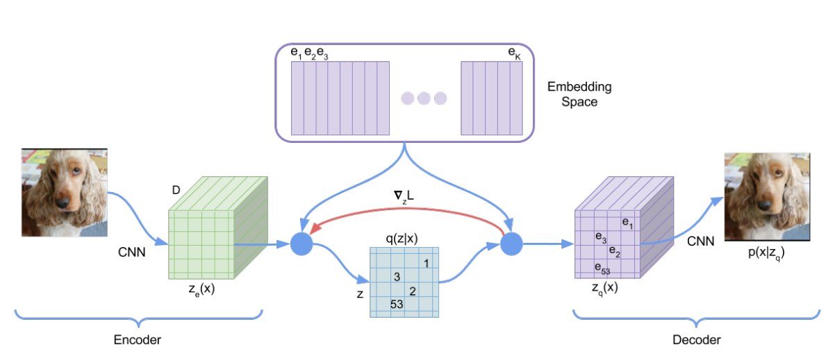 vq-vae는 분포를 학습하는 대신, 이산화된 값을 이용한다.