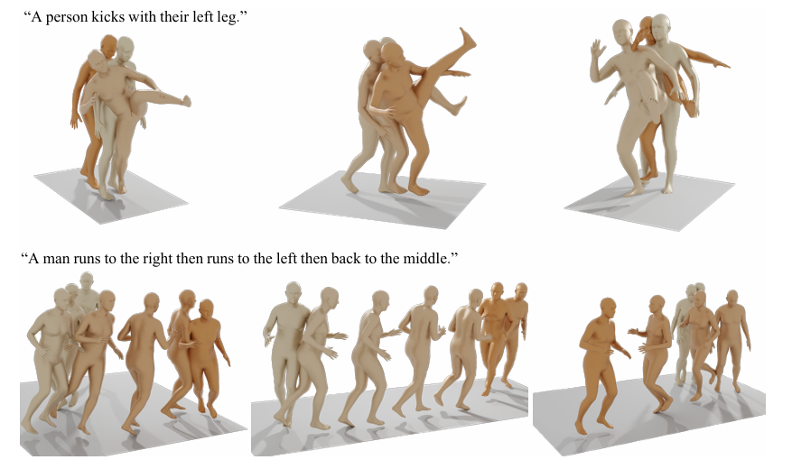 text를 주어주면 그에 맞는 motion을 뽑아준다. 그림을 보면 같은 text여도 다양한 motion을 보여주는 것을 알 수 있다. 색이 짙어질수록 나중 프레임이다.