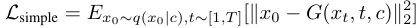 - T와 c를 MDM에 같이 넣어 x0를 예측한다.