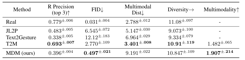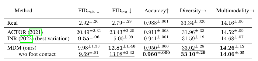 해당 taskl에 특화된 MoDi에 비해 낮은 성능을 보이지만, ACTOR에 견줄만하여 논문에서는 충분히 괜찮은 성능이라고 표현하였다. (achieve plausible ~)